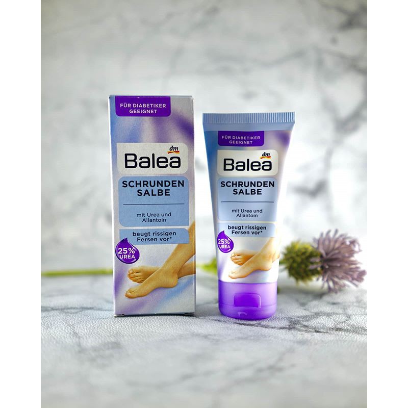 Sản phẩm kem dưỡng da chân Balea Schrunden Salbe với thành phần glycerin và allantoin tạo cảm giác mềm mại cho làn da cùng urê và allantoin giúp bảo vệ gót chân không bị nứt nẻ. Sản phẩm được đánh giá là phù hợp với cả những làn da nhạy cảm nhất.