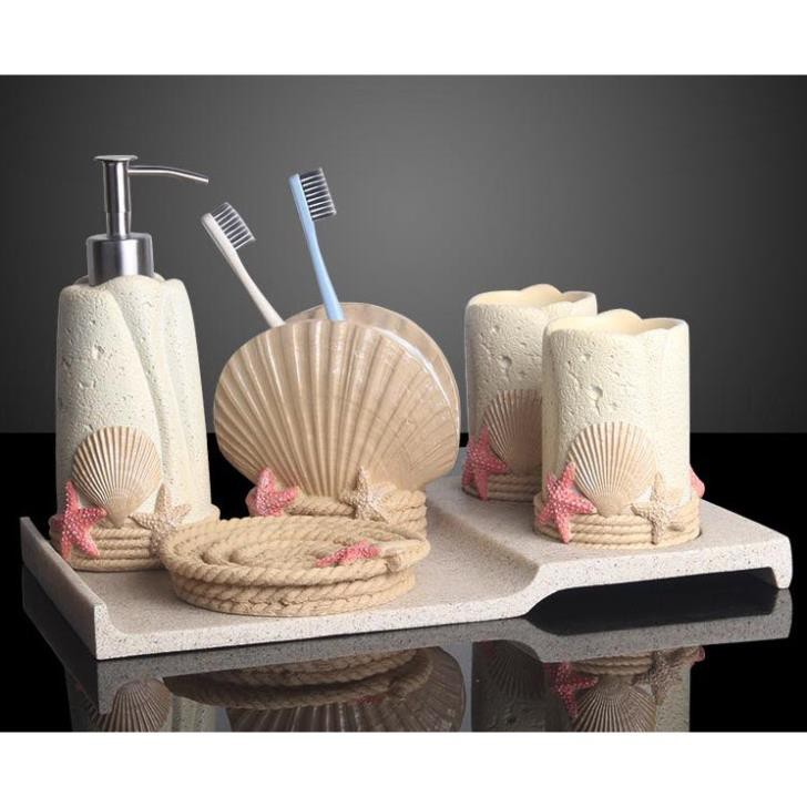 Bộ đồ dùng nhà tắm Kingsley KSL007 lấy cảm hứng từ biển cả, sẽ làm không gian nhà tắm của gia đình thêm phần độc đáo và thú vị. Bộ sản phẩm được làm từ chất liệu resin (nhựa thông) tái hiện hình ảnh những con sò dễ thương. Bộ sản phẩm bao gồm khay đựng xà bông, bình đựng sữa tắm, khay đựng bàn chải, ly. Mỗi sản phẩm có những chức năng khác nhau, để người dùng có thể sắp xếp gọn gàng các đồ vật trong nhà tắm, mang đến không gian mới mẻ, gọn gàng. Đây chính là món quà dễ thương và rất ý nghĩa để dành tặng vợ chồng anh trai.