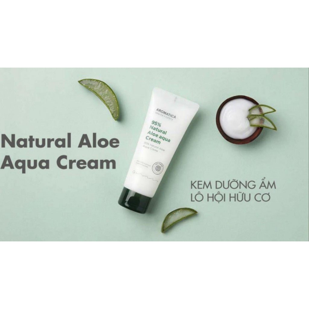 Mỹ phẩm làm đẹp Aromatica Natural Aloe Aqua Cream Hàn Quốc được chiết xuất từ lô hội hữu cơ không màu, không mùi cùng với các dưỡng chất Ceramide và Gag có trong nấm giúp dưỡng ẩm chuyên sâu làn da, mang đến khả năng làm dịu mát tức thì, dưỡng ẩm dịu nhẹ cho tất cả các loại da để da trở nên tươi tắn hơn. Cùng với nước chưng cất của hoa oải hương, hương thảo hữu cơ đem đến một mùi hương thơm mát và giúp cải thiện làn da một cách hiệu quả. Sản phẩm còn có chứa Adenosine và Niacinamide giúp chống lại các dấu hiệu lão hóa da, làm da căng mịn và làm sáng da.