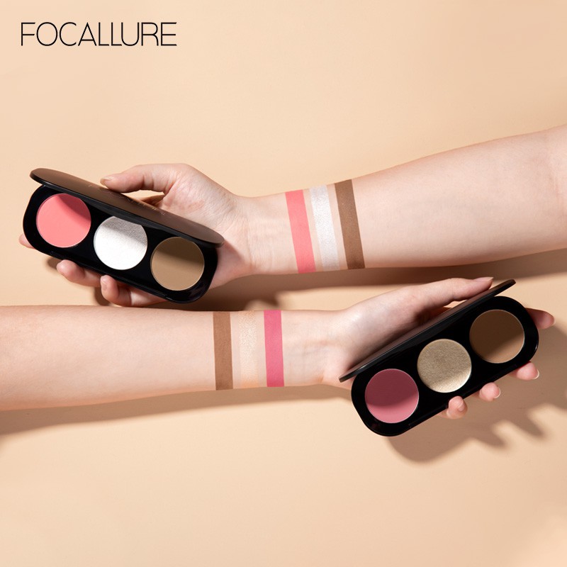 Bảng phấn bắt sáng và má hồng Focallure 3 màu trang điểm tiện dụng