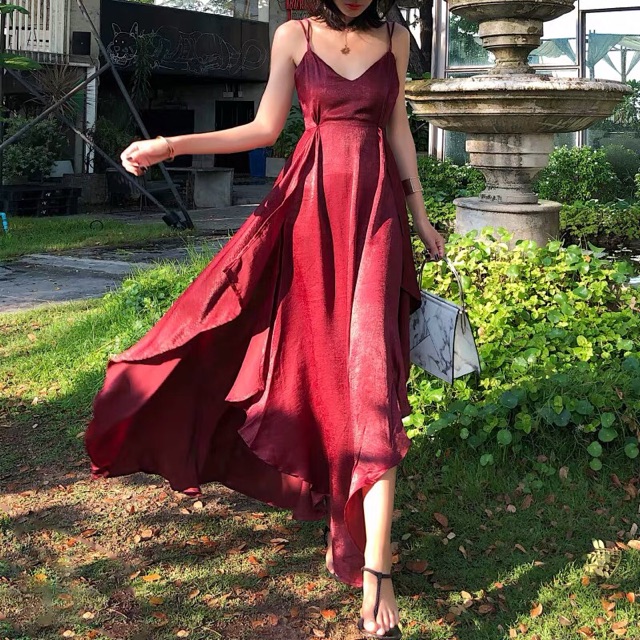 Váy maxi 2 dây hở lưng cổ V dáng dài xẻ tà lụa satin sexy đang được bán tại Shopee với giá 310.000 VND. Bạn có thể đặt mua bằng cách nhấp vào đây.