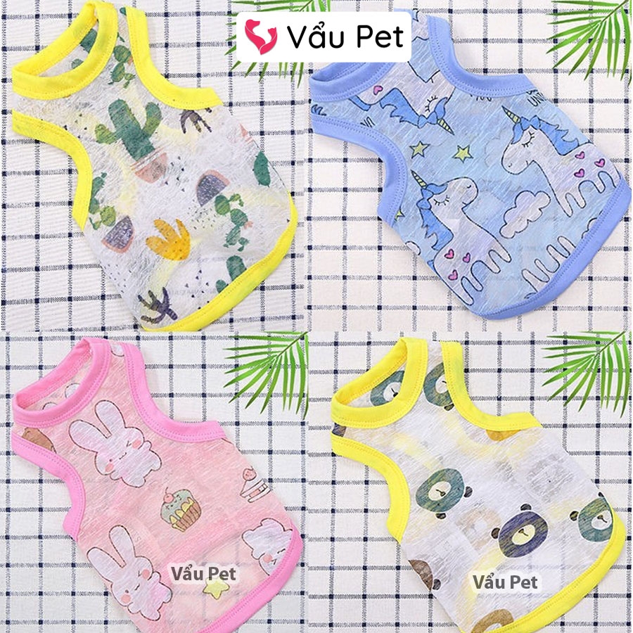 Hình ảnh những chú chó nô đùa bên bãi biển cùng chiếc áo ba lỗ trông thật thú vị phải không nào. Cách chúng chạy nhảy không khác gì một em bé thực thụ cả. Chiếc áo được làm bằng vải cotton mỏng, thoáng khí và khả năng co giãn tốt. Với các họa tiết hoạt hình như xương rồng, gấu pony, thỏ hồng và gấu vàng, bạn sẽ có một bộ sưu tập cả 4 mẫu áo sắc màu thay đổi trong ngày hè luôn nhé. Phần cổ và hai vai của hai chân trước được bo thêm lớp vải thun tạo điểm nhấn cho chiếc áo. Sản phẩm này khá dễ mặc, không làm bết lông và cũng mau chóng khô sau khi giặt giũ.