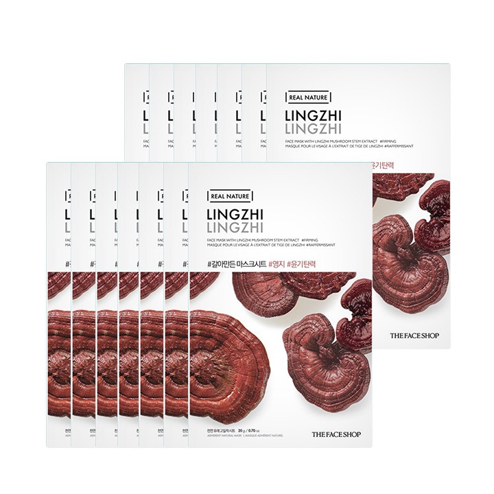 Set mặt nạ nấm linh chi TheFaceShop gồm có 10 miếng mặt nạ giấy với chiết xuất từ nấm linh chi, một thảo dược quý giá với 119 khoáng tố vi lượng đã được khoa học chứng minh là có thể chống lại ung thư, dị ứng và lão hóa. Chỉ cần khoảng 15 phút đắp mặt nạ sau khi làm sạch da, nàng có thể cảm nhận được sự khác biệt từ một làn da căng mịn và săn chắc.