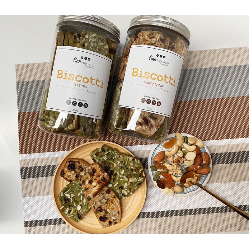 Món bánh Biscotti của Finn được chế biến từ các nguyên liệu chuẩn eat clean như: bột mì nguyên cám, bột hạnh nhân, trứng gà, mật ong; các loại hạt như: hạnh nhân, hạt điều, hạt bí, nho khô với tỉ lệ phù hợp sau đó được nướng 2 mặt tạo nên vị giòn tan khi ăn. Với món bánh tiện lợi này bạn có thể ăn liền hoặc ăn cùng hoa quả, sữa chua đều rất thơm ngon. Bánh cung cấp lượng calo tốt nên giúp bổ sung năng lượng cho các bạn tập gym, hoạt động thể thao mạnh...nên các chị em văn phòng cũng có thể ăn thường xuyên mà không lo béo.