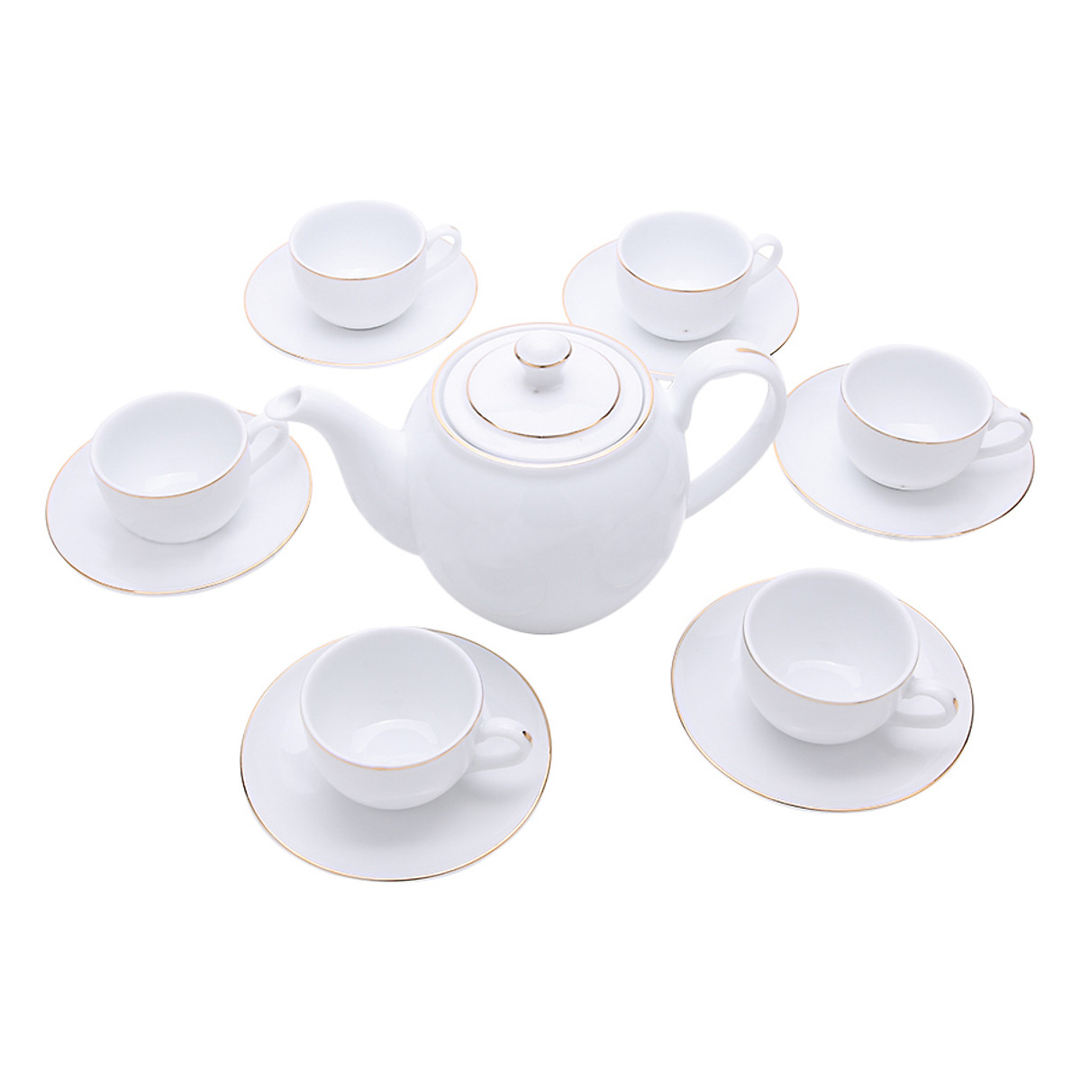 Với khối lượng sản phẩm gọn nhẹ chỉ 1,9kg, bộ ấm trà bao gồm 1 bình trà lớn, 6 tách trà và 6 dĩa dùng để lót tách có thể sử dụng được trong những dịp khách đến chơi nhà. Thiết kế của bộ ấm trà chủ đạo là màu trắng, phía trên viền sẽ có những đường chỉ vàng mỏng trông thật bắt mắt và sang trọng hơn hẳn. Có bộ ấm trà trong nhà sẽ giúp không gian của gia đình bạn thêm tươi sáng, hiện đại hơn. Đây sẽ là lựa chọn tuyệt vời làm quà cho bố đáng kính của bạn đó!