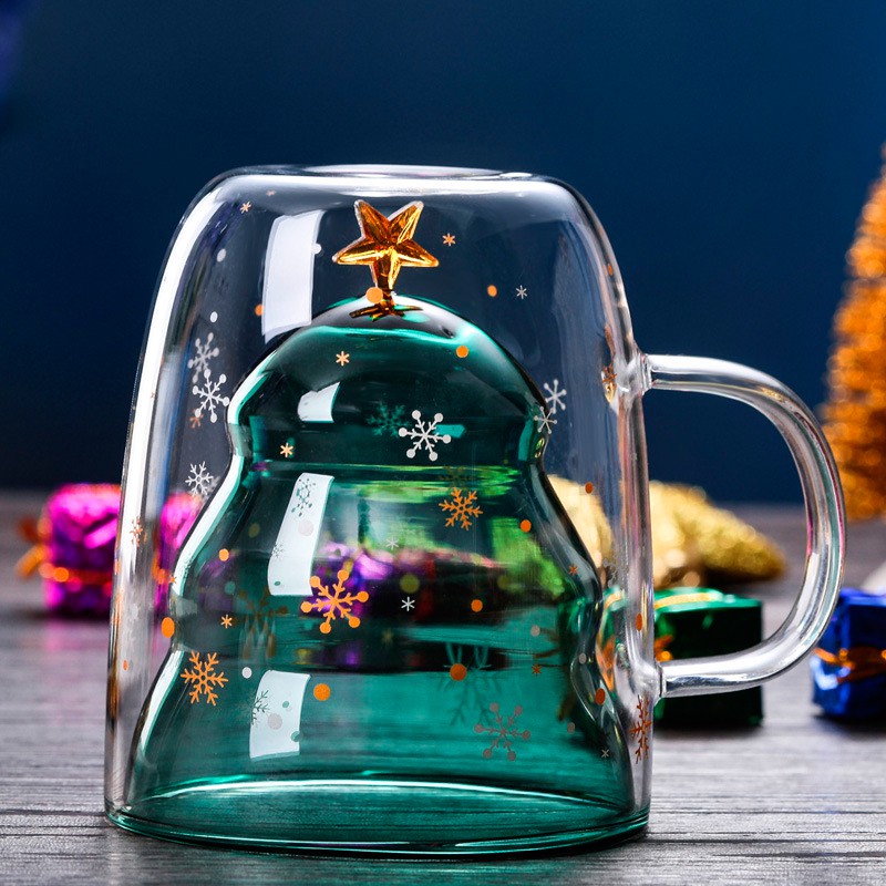 7. Ly thuỷ tinh 2 lớp hình cây thông cách nhiệt cao cấp