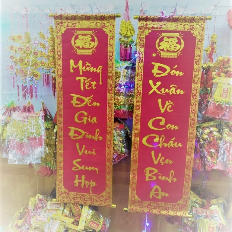 - Câu đối đỏ, tranh ảnh: Treo câu đối đỏ trong nhà vào ngày Tết là một nét văn hóa truyền thống độc đáo của người Việt. Câu đối đỏ hoặc các bức tranh treo tường chứa đựng ý nghĩa cầu chúc sự êm ấm, bình an, vinh hoa, phú quý sẽ là món quà rất tuyệt vời dành tặng những người thân yêu nhân dịp năm mới.