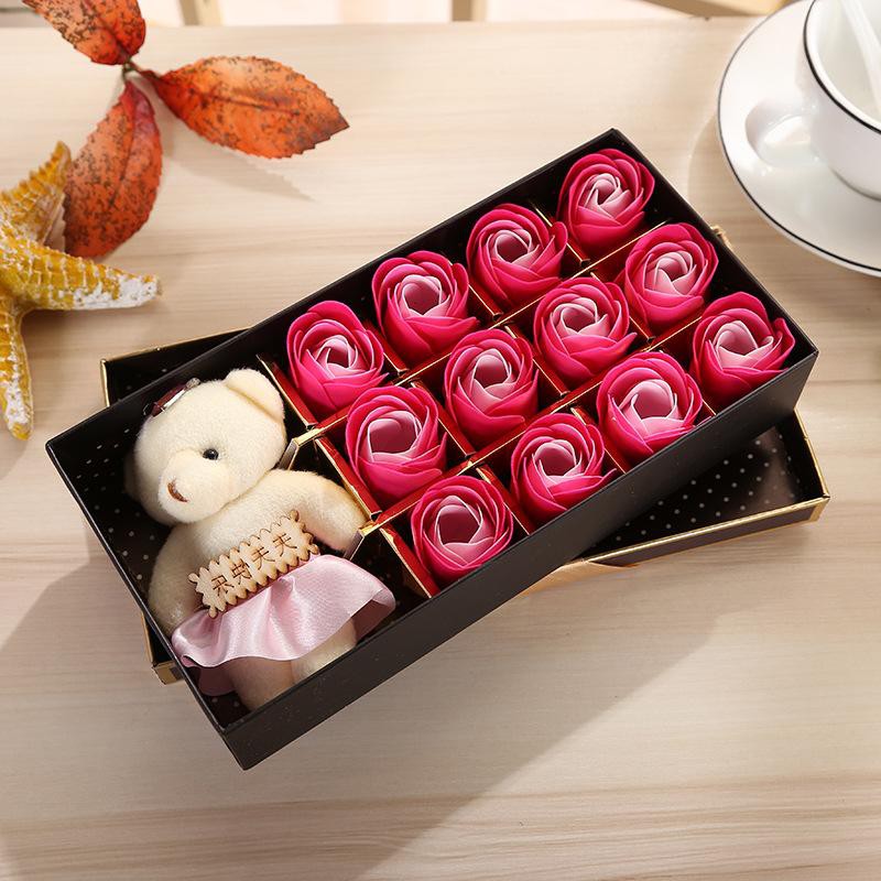Hộp quà hoa hồng sáp 12 bông kèm gấu bông ngộ nghĩnh là món quà tặng đem đến những niềm vui và sự ngọt ngào cho bạn nữ. Sản phẩm được tạo hình đẹp mắt và ngộ nghĩnh cùng những hương thơm sống động, quyến rũ khiến bạn nữ thích mê từ cái nhìn đầu tiên. Những bông hoa sáp được làm dưới đôi bàn tay khéo léo đã tạo nên những cánh hoa mềm mại rất giống hoa thật. Bề mặt hoa đều được phủ sáp tạo nên hương thơm tinh tế, nhẹ nhàng. Hoa không bị tàn úa mà còn có thể lưu được hương thơm lên đến 2 – 3 năm là món quà tặng thể hiện sự chân thành, yêu thương của bạn dành cho bạn gái. Hộp quà được thiết kế hình thức sang trọng có đi kèm một chú gấu bông dễ thương để gửi gắm những điều tốt đẹp dành cho người nhận.