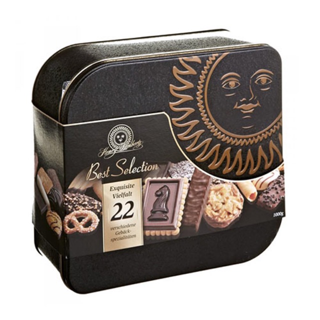 Bánh quy mặt trời là một trong những sản phẩm của Lambertz – thương hiệu bánh quy số 1 của Đức. Phần hộp bên ngoài là hộp thiếc sang trọng với phần thiết kế hoa văn, hình ảnh đậm chất Châu Âu vừa đẹp mắt lại vừa lịch sự để đem đi biếu. Bên trong hộp bao gồm 22 loại bánh với nhiều vị khác nhau, nhưng đều là những loại bánh ngon nhất của hãng có vị ngọt vừa phải. Mỗi loại bánh sẽ được phủ một lớp socola trắng, socola đắng và socola sữa để tăng thêm hương vị béo ngậy và ngọt ngào cho từng chiếc bánh quy. Vỏ bánh giòn giòn hòa quyện cùng hương thơm của bơ, sữa và các loại socola tạo nên hương vị ngon không cưỡng lại được. Với những chiếc bánh quy này, các bạn cũng có thể nhấm nháp cùng một ly trà để ngày tết thêm phần ấm cúng và vui vẻ.