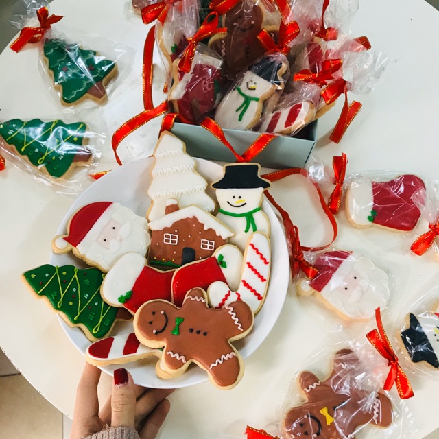 Set bánh Noel là một trong những loại được nhiều gia đình đặt mua trong dịp Giáng Sinh. Set bánh này gồm 10 chiếc bánh khác nhau được đặt cẩn thận trong chiếc hộp xinh xắn, trên miệng túi được trang trí bởi chiếc nơ nhỏ vô cùng đáng yêu. Set bánh với vị ngọt dịu, nhiều màu sắc hấp dẫn, đây sẽ là món quà thú vị mà bé sẽ rất vui thích khi nhận được.