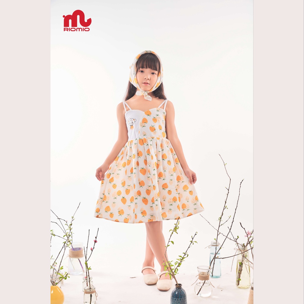 Chiếc váy hai dây bé gái này là sản phẩm chính hãng Riomio xuất xứ Việt Nam, với chất đũi lạnh mềm mịn, thiết kế hai dây, phần dưới bồng bềnh, siêu nhẹ, cho bé cảm giác thoải mái khi mặc. Váy phù hợp để mặc vào mùa hè, trong mọi hoàn cảnh dù bé đi chơi hay đi học. Váy có in hình dâu xinh xắn mà mọi bé gái đều yêu thích. Váy bé gái Riomio có màu xanh tươi mát, size từ 4 đến 10 để bạn lựa chọn làm quà cho bé.