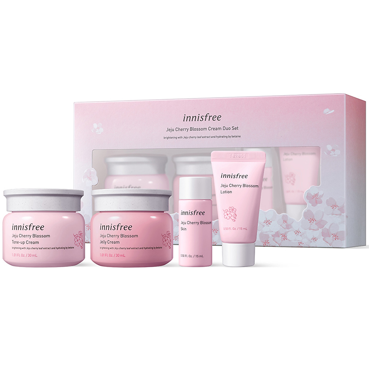 Một dòng sản phẩm nữa đến từ Innisfree cũng tạo được “tiếng vang” khá lớn ngay khi mới ra mắt, chính là dòng sản phẩm dưỡng ẩm sáng da Innisfree Jeju Cherry Blossom Cream Duo Set.