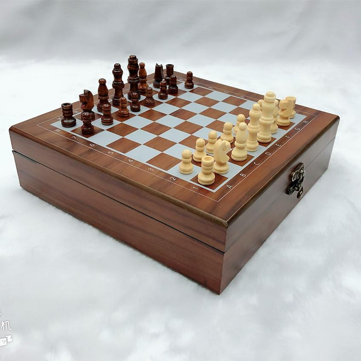 Cờ vua là một trò chơi trí tuệ mang tính chiến lược, có khả năng kích thích tư duy, thúc đẩy sự phát triển não bộ, giúp người chơi rèn luyện khả năng đưa ra quyết định trong mọi lĩnh vực của cuộc sống. Do đó, mua tặng bé một bộ cờ vua sẽ là một việc làm vô cùng ý nghĩa, giúp bé vừa được giải trí vừa được nâng cao khả năng tư duy, định hướng và có tầm nhìn xa hơn trong tương lai. Bộ sản phẩm cờ vua này gồm có 32 quân cờ vua gỗ, 2 bộ bài poker, 5 viên xúc xắc và một hộp bàn cờ size 24cm x 24cm x 7cm.