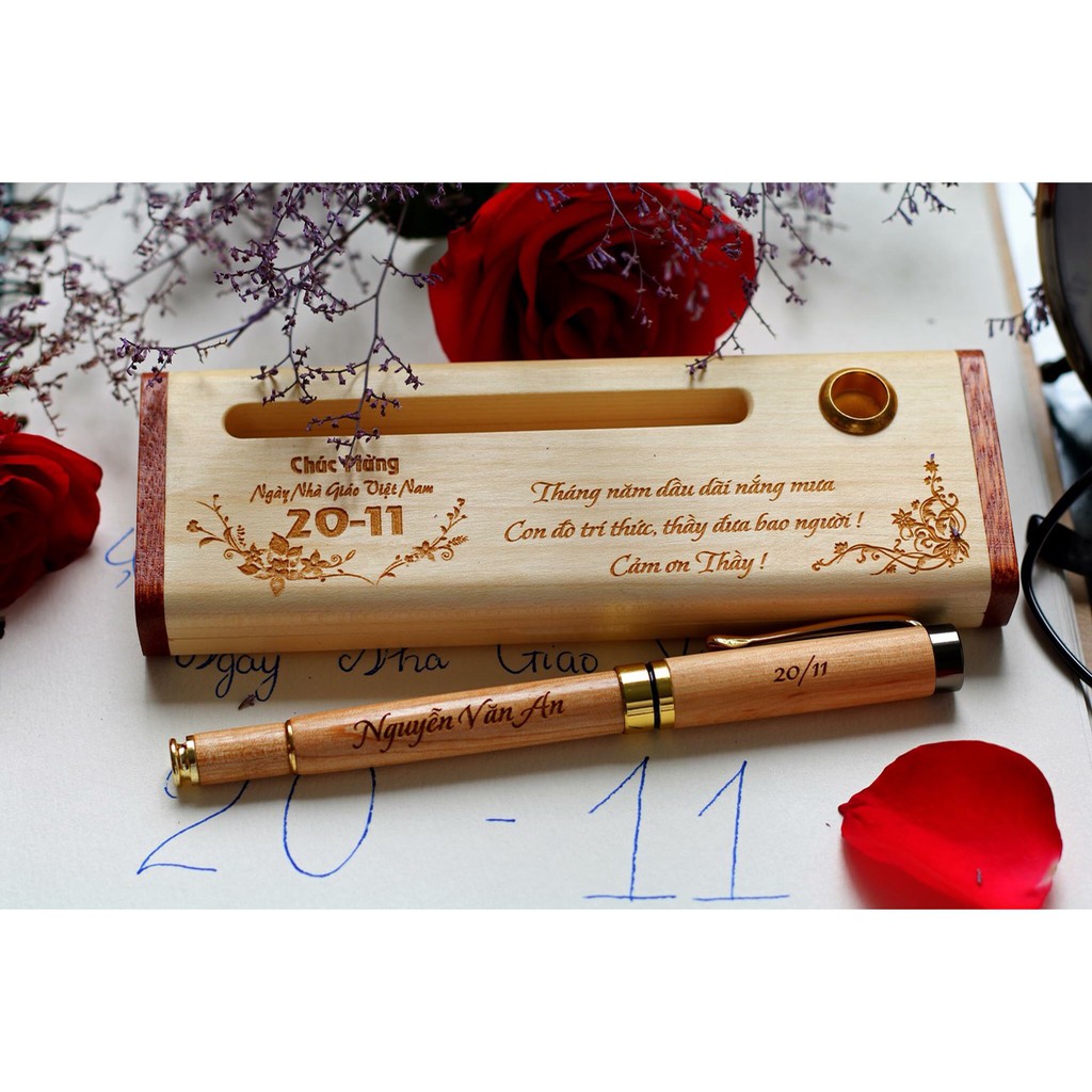 Như chúng ta đã biết, nghề giáo là nghề mang đến con chữ, những tương lai tươi sáng cho lớp trẻ nhiều thế hệ. Vậy nên khi nhắc đến giáo viên thì hình ảnh của những chiếc bút chắc chắn sẽ được liên tưởng đến. Bạn nghĩ sao nếu lựa chọn một món quà có thể bày tỏ được sự biết ơn và cả sự trân trọng nghề nghiệp của mình đến thầy cô? Hãy chọn sản phẩm Hộp Bút Gỗ Tri Ân Thầy Cô để làm quà nhân dịp lễ này bạn nhé!