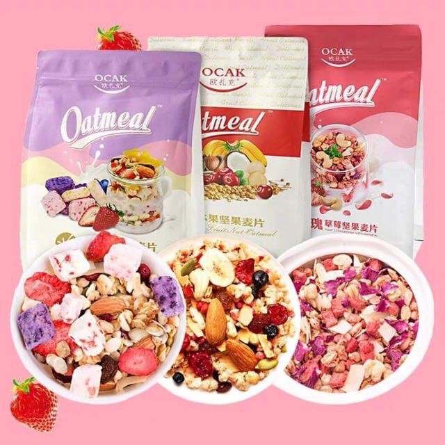 Nói về Ngũ Cốc Sữa Chua Hoa Quả Đủ Vị thì có các loại táo hồng đậm sữa chua 400g, nho hồng nhạt mix hạt 500g, dưa gang xanh 400g, dứa vàng 400g hay cà tím 400g... Sản phẩm là các loại hạt sấy khô quyện cùng trái cây chua ngọt vô cùng ngon, bạn có thể ăn không hoặc mix cùng sữa tươi, sữa chua, salad hoặc bánh ngũ cốc đều tuyệt hảo. Không chỉ vậy, ngũ cốc có hàm lượng chất béo rất thấp nhưng lại có hàm lượng chất xơ, vitamin và khoáng chất cao, giúp cơ thể có đầy đủ dưỡng chất tốt. Nói về giảm cân, ngũ cốc này được mệnh danh là ngũ cốc giảm cân chỉ gồm trái cây sấy khô và yến mạch nướng và hoàn toàn không có đường, rất phù hợp cho các chị em sợ lên kí. Bạn có thể dùng để ăn sáng hòa với sữa hoặc ăn vặt và sẽ ngon hơn khi bạn mix với sữa chua, sữa tươi ướp lạnh đó. Sản phẩm dành cho mẹ bỉm sữa, các nàng đang giảm cân nhưng không muốn dung nạp quá nhiều calories, đồng thời đối với các bạn ăn kiêng thì nên nhớ ăn trước khi ăn cơm, ngược lại muốn tăng cân thì nhớ ăn sau bữa ăn nhé!