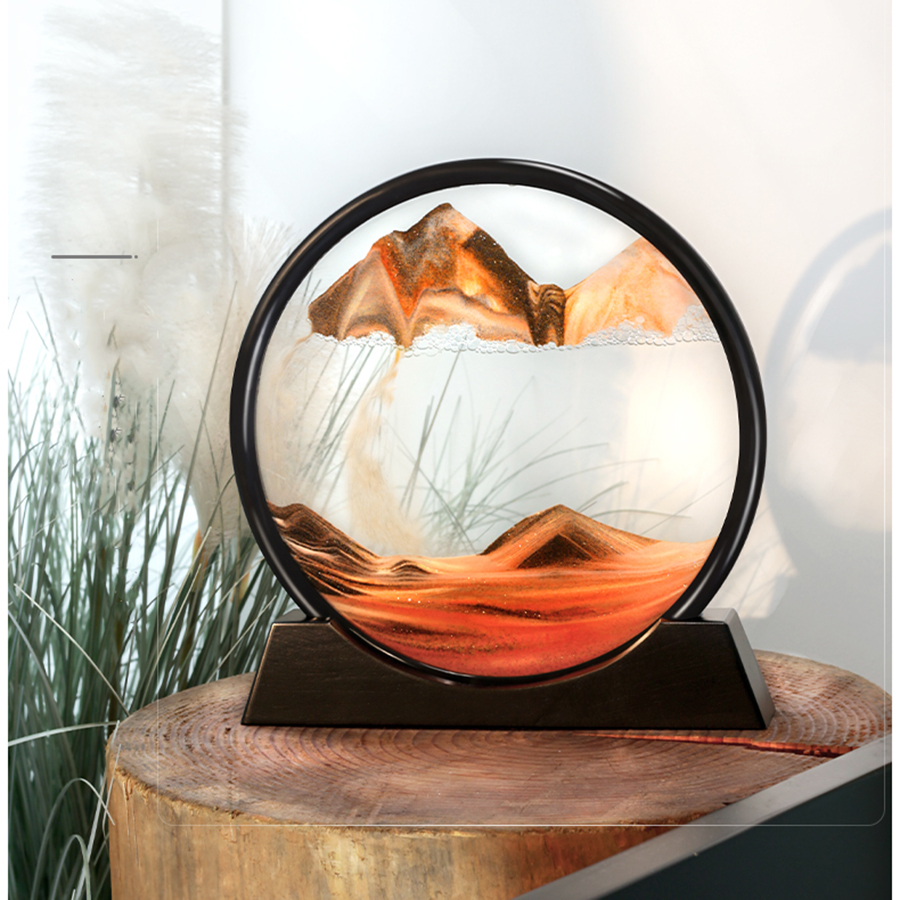 Bức tranh tròn có kích thước 26x27cm, có thể xoay 360 độ mà mỗi góc xoay đều tạo ra hình thù cát chảy khác nhau, không mặt nào giống mặt nào. Ngoài ra, khung tranh cát còn được bao bọc bằng kính thủy tinh trong suốt và được viền lại bằng gỗ nên toàn thể bức tranh cát hiện lên vô cùng tinh tế, đẹp mắt.