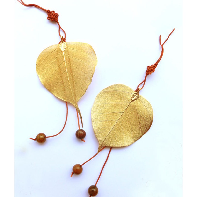 Từ xa xưa cây bồ đề là sự tượng trưng cho sự cầu mong may mắn, bình an. Vì thế, mọi người thường chọn chiếc lá bồ đề để làm vật phẩm phong thủy dành tặng cho nhau. Lá bồ đề mạ vàng 24 Carat kèm 2 nút hạt đá mã não (mắt hổ) được làm từ những chiếc lá bồ đề thật và mạ vàng cẩn thận. Đây có thể được xem là một món quà mang ý nghĩa cầu mong mọi chuyện đều suôn sẻ, thành công trên con đường đi học nơi phương xa của bạn.