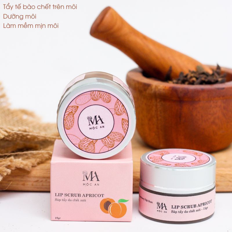 Tẩy da chết môi Mộc An chiết xuất từ mơ - Lip Scrub Apricot là một sản phẩm tẩy da chết rất lành tính giúp đôi môi của bạn nữ luôn mềm mại, mịn màng. Các thành phần chính của Lip Scrub Apricot bao gồm vỏ quả mơ (Apricot Shell), dầu bơ hạt mỡ, dầu hạnh nhân, shea butter, sáp ong và hương quả mơ. Sản phẩm không chứa chất bảo quản hay chất gây hại nào cho cơ thể, giúp đôi môi khỏe mạnh, mềm mượt, hồng hào từ bên trong.