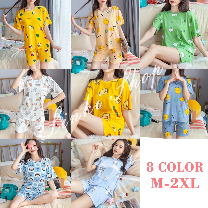 Set đồ với chiếc áo thun cổ tròn và quần thun short giản dị, điều khiến bộ quần áo mặc nhà này trở nên đặc biệt đó chính là may từ những hoạ tiết cực kì đáng yêu, màu sắc tươi tắn và trẻ trung như vàng, trắng, xanh điểm thêm những chú chó, chú vịt, chú thỏ hay trái bơ trông vô cùng đáng yêu. Được may từ vải polyester là chất liệu vải vừa thoáng mát, thoáng khí lại mềm mại khi mặc lên. Form đồ may theo kiểu dáng thoải mái nhất có thể phù hợp cho các nàng mặc vào các mùa trong năm từ oi bức đến lạnh giá.