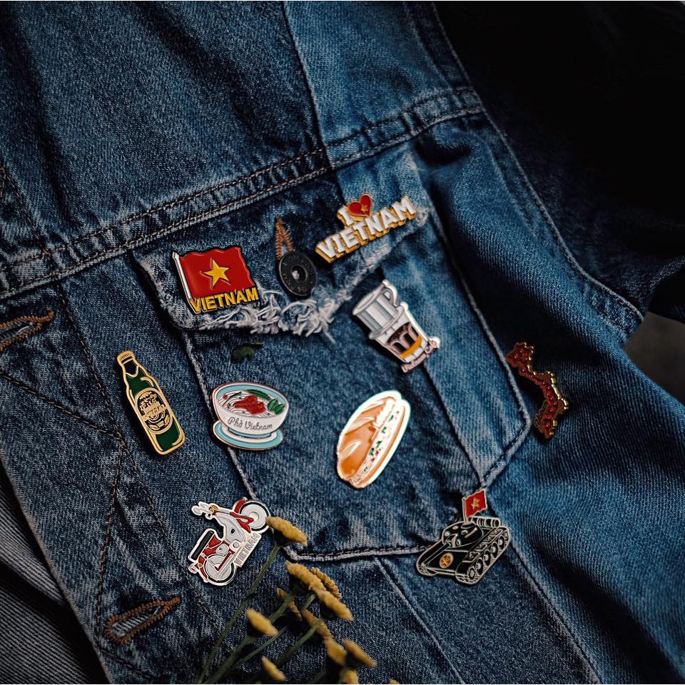 Bên cạnh trang phục thì các phụ kiện mang biểu tượng của Việt Nam cũng là món quà ý nghĩa dành cho người xa quê hương. Bánh mì, phở, cà phê,... là những món ăn quen thuộc được sáng tạo cách điệu thành các huy hiệu dùng trang trí lên giỏ xách hay nón vô cùng sành điệu là phần quà mà bạn có thể tham khảo khi còn đang chưa biết mua quà gì tặng cho người bạn sắp đi xa. Những chiếc huy hiệu bằng chất liệu kim loại chất lượng, màu sắc sinh động, có chốt ở mặt sau giúp giữ chặt trên áo hoặc túi xách.