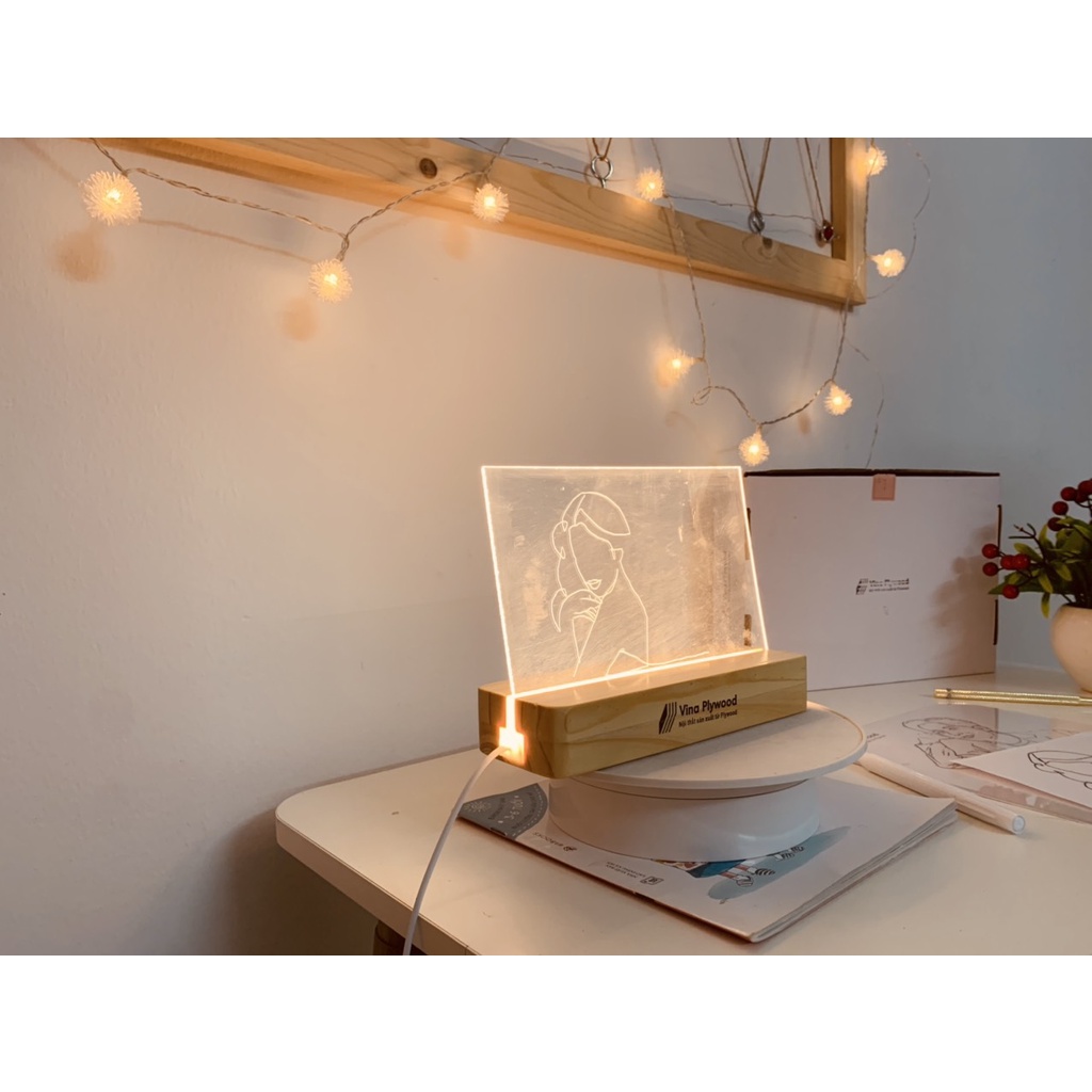 Giấc ngủ của người bạn nơi đất nước xa lạ sẽ thêm phần ngon giấc khi có bên cạnh một chiếc đèn ngủ có màu sắc ấm áp. Đèn ngủ Vinaplywood kèm hình ảnh được khắc trên tấm mica do chính tay bạn thực hiện sẽ là một món quà thật đặc biệt. Bộ sản phẩm gồm có một tấm mica, một đế đặt kèm đèn led bằng gỗ thông đã qua xử lý và một chiếc bút khắc bằng đầu phủ vonfram giúp bạn dễ dàng khắc họa theo ý muốn.