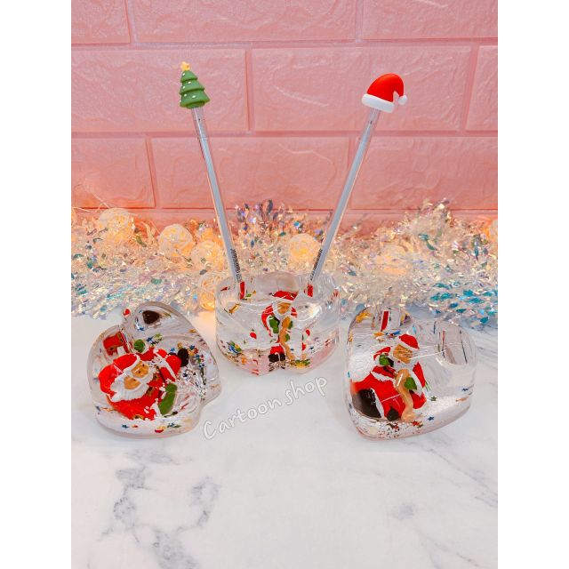 Một món quà khá lạ lẫm nhưng cũng rất đặc biệt mà bạn có thể dành tặng cho bạn bè, đồng nghiệp đó là Đồ cắm bút chặn giấy thủy tinh họa tiết Noel.