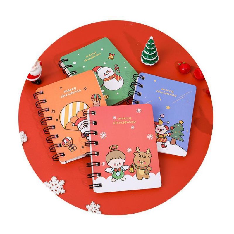Sổ mini Noel, Xmas đẹp ghi note, cầm tay nhiều trang giấy tiện lợi là món quà tặng xinh xắn và giá lại rất "yêu thương", món quà này thích hợp dành tặng cho các bạn bè là học sinh, sinh viên, giúp ghi chép những kiến thức, những ghi chú kế hoạch, hoặc bạn cũng có thể dành nó để tặng những người thân yêu. Cuốn sổ có kích thước 8 x 10.5cm, nhỏ gọn và tiện lợi, bao gồm 80 trang giấy không dòng kẻ, chất liệu giấy đẹp không gây chói mắt hoặc mỏi mắt khi nhìn vào, gáy sổ làm bằng lò xo chắc chắn không bị cong vênh, bìa sổ mang nhiều màu sắc với các họa tiết nhân vật noel siêu dễ thương.