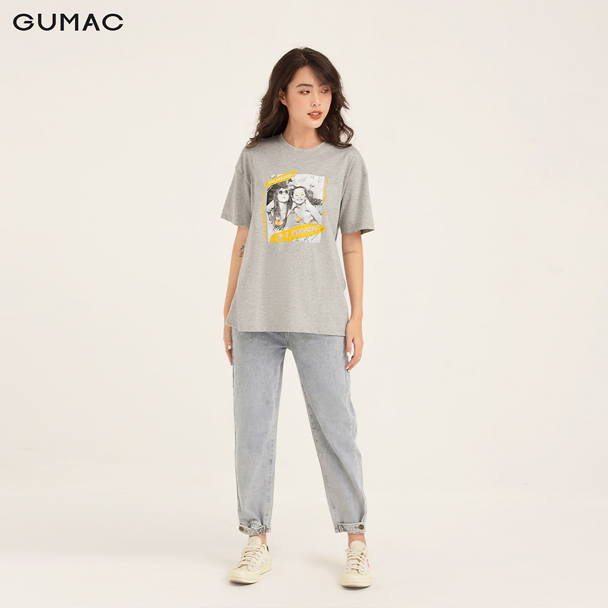 Áo thun in form rộng in hình cô gái GUMAC đang được bán với giá khuyến mại 84.000 VND (giá gốc: 295.000 VND) tại Tiki, bạn có thể đặt mua khi nhấn vào đây.