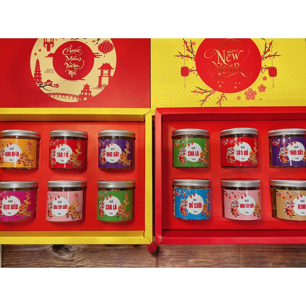Bạn có thể tham khảo Hộp quà tết mứt Nutfarm - một hộp quà tặng vừa với túi tiền của mọi nhà với giá từ 322.500VND (giá gốc 350.000VND). Bên trong có các loại mứt trái cây đa dạng phong phú như kiwi, nho, kẹo dẻo, dẻ cười, dâu tây sấy, hạnh nhân, chà là, táo đỏ. Mỗi loại đều có mùi vị độc đáo, dùng kèm thêm với trà lại càng làm say lòng người, mở đầu cho những câu chuyện nhộn nhịp, những cuộc gặp gỡ tốt lành đầu năm mới. Bạn có thể đặt mua tại Shopee bằng cách nhấn vào đây.