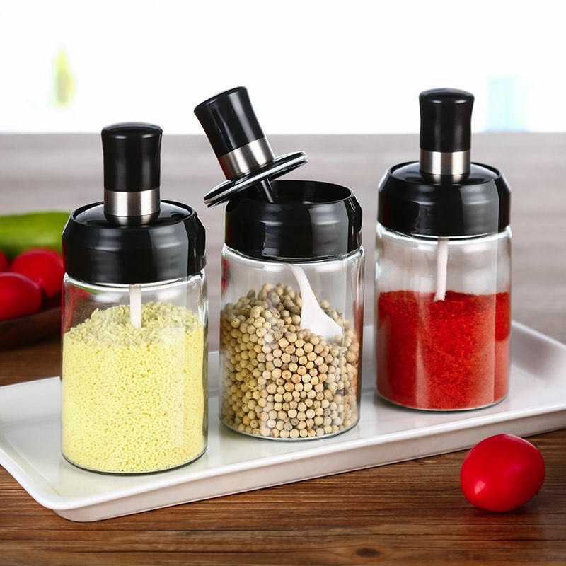 Set 3 hũ gia vị thủy tinh tích hợp thìa cao cấp