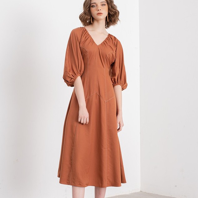 Váy tay lỡ cổ V trần chỉ cho cô nàng dịu dàng