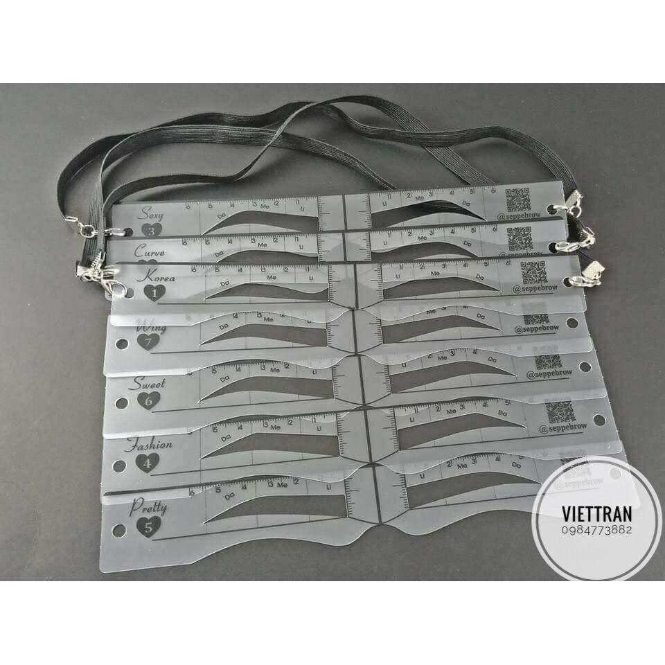 Khuôn kẻ lông mày hàng Thái chính hãng gồm có 8 kiểu dáng tha hồ cho các chị em lựa chọn: Korea (Hàn Quốc), Sexy (quyến rũ), Curve (cong), Wing (dạng đôi cánh), Fashion (thời trang), Pretty (xinh đẹp) và 1 kiểu dành cho nam (Boy).
