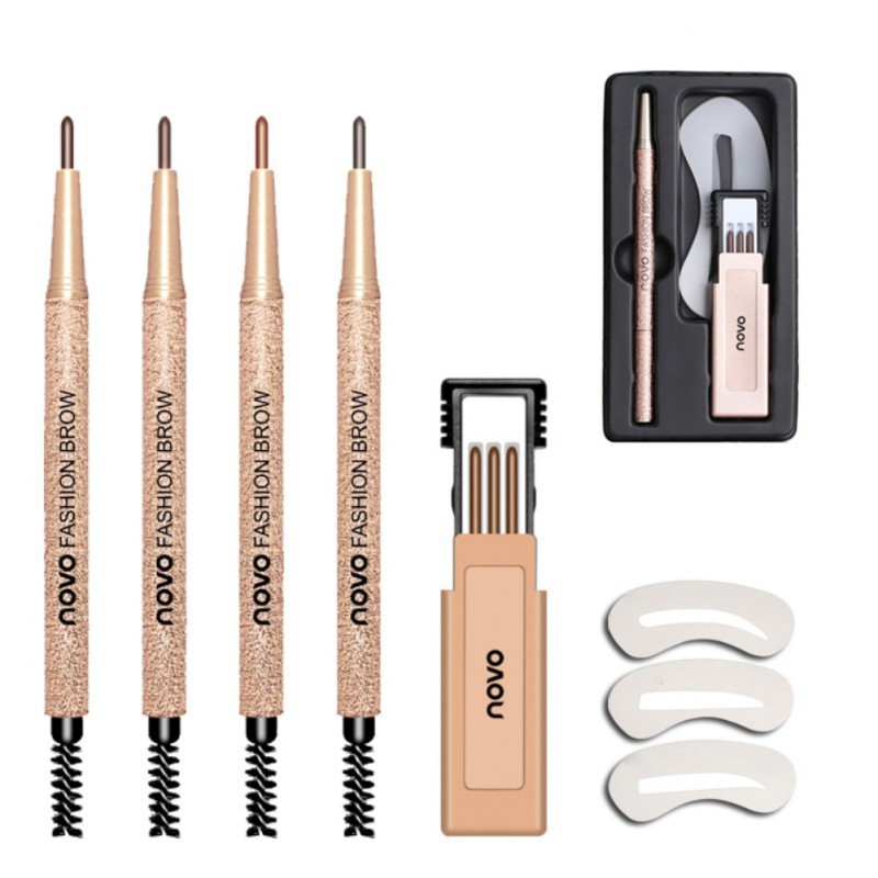 Bộ sản phẩm gồm có 3 lõi chì và 3 khuôn kẻ lông mày. Chì kẻ chân mày Novo Fashion Brow có thể vẽ 3 kiểu dáng lông mày khác nhau để phù hợp với sở thích của từng khách hàng, mang phong cách Hàn Quốc giúp tôn lên đường nét của khuôn mặt, giúp làm cho vùng mắt được gọn gàng hơn.