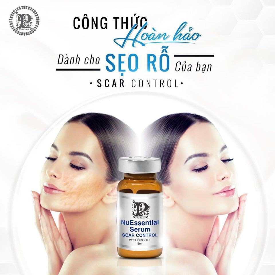 NuEssential Serum Scar Control là một loại serum tế bào gốc giúp điều trị sẹo rỗ được chiết xuất cũng như điều chế với nồng độ tế bào gốc cao giúp kích thích quá trình tăng trưởng ở biểu bì một cách nhanh chóng, lấp đầy sẹo rỗ hiệu quả. Sản phẩm này được thiết kế chuyên biệt cho việc điều trị sẹo, đặc biệt là sẹo rỗ, sẹo lõm,...