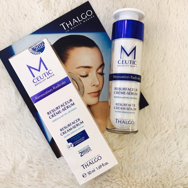 Thalgo Mceutic Resurfacer Cream-Serum là một sản phẩm được phát triển bởi Viện nghiên cứu Thalgo Laboratory của Pháp. Với thành phần chứa 2 loại vitamin (PP, B2) cùng 14 khoáng chất, 18 axit amin cùng axit hyaluronique và một nucléoside chống lão hoá ở nồng độ cao để có thể phát huy tác dụng.