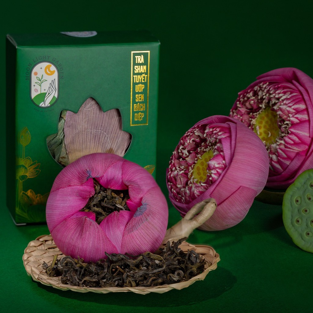 Trà Shan Tuyết ướp sen Bách Diệp Tây Hồ đã trải qua những giai đoạn chế biến kỳ công để tạo ra thành phẩm chứa đựng đủ tinh hoa của đất trời. Trà Shan Tuyết cao cấp được ướp trong những bông hoa sen Bách Diệp - giống sen được tuyển chọn và thu hoạch trực tiếp tại hồ Tây, sau đó sấy lạnh theo tiêu chuẩn công nghệ Hàn Quốc để bảo đảm độ tươi mới, tự nhiên và lưu giữ hương vị nguyên bản của trà sen. Trong ngày Tết cổ truyền dân tộc mà được thưởng thức một chén trà ướp sen Hà Nội thì còn gì ấm áp và tuyệt vời hơn.