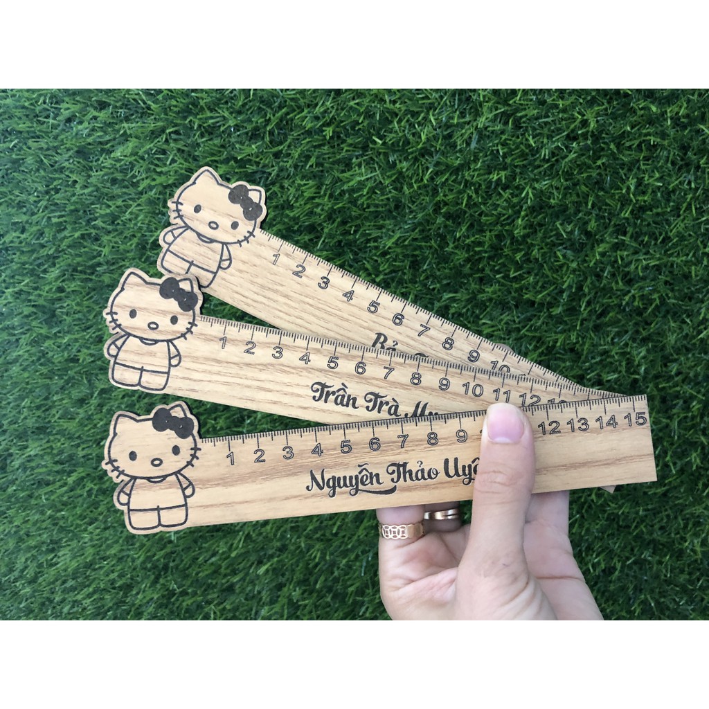 Thước gỗ khắc hình Hello Kitty được làm từ gỗ có màu sắc tươi sáng, là người bạn thân thiết của các bé học sinh trong những bộ môn quan trọng. Thước kẻ có hình Hello Kitty được khắc lên ở phần đầu, tạo nên sự khác biệt giữa nó và những chiếc thước kẻ bình thường khác. Sản phẩm có hình chữ nhật, kích thước chiều dài 18cm, chiều rộng 3cm, dễ dàng cất gọn vào hộp đựng bút, không lo bị thất lạc. Thước được chia cm đều đặn bởi các vạch đen rõ ràng, cách nhau 1cm. Điều đặc biệt là chúng ta có thể khắc tên của mình lên chiếc thước này, như một cách để đánh dấu chủ quyền, tạo sự độc đáo. Đối với các fan của Hello Kitty thì đây thực sự là sản phẩm không thể bỏ qua trong hành trình khám phá tri thức của mình.