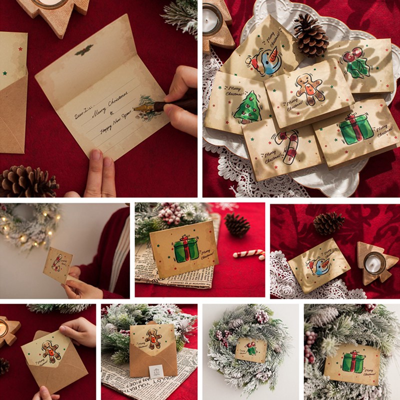 Thiệp giáng sinh tuy chỉ là một món quà đơn giản nhưng nó lại có tác dụng hơn gấp hàng vạn lần những lời nói. Trong cuộc sống hiện đại, với sự phát triển của mạng xã hội thì những thông điệp viết tay không còn được thịnh hành như trước nữa. Vậy nên, nhân dịp Noel này bạn hãy gửi gắm tình cảm của mình vào những nét chữ ghi trên chiếc thiệp xinh xắn để tặng nó cho bạn thân của mình. Thiệp giáng sinh được làm bằng giấy bìa cứng có màu nâu vintage, được in hình vẽ ngộ nghĩnh mang chủ đề Noel như cây thông, người tuyết, ông già Noel,... Thiệp được đựng trong một chiếc phong bì cùng màu mang đến sự lịch sự, tế nhị cho món quà chan chứa tình cảm này.