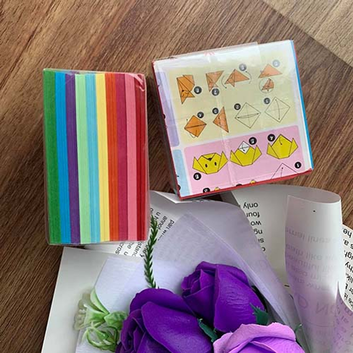 Origami là nghệ thuật gấp giấy Nhật Bản mà bạn có thể áp dụng để từ một tờ giấy bình thường, bạn có thể tạo nên những chú hạc giấy sinh động và đầy màu sắc. Sản phẩm giấy gấp Origami là giấy thủ công chuẩn đáp ứng đúng tiêu chuẩn bền dai, hai mặt một màu với kích thước 7,5cm x 7,5cm, phù hợp để bạn làm món quà thủ công ý nghĩa tặng bạn gái. Giấy được làm từ chất liệu cao cấp, trơn mịn, cho nếp gấp thẳng, đều hình. Màu sắc của giấy rất đa dạng, sắc nét với 10 màu khác nhau là hồng nhạt, hồng đậm, đỏ, vàng, cam, tím, xanh lam, xanh nước biển nhạt, xanh nõn chuối, xanh lá cây. Bộ giấy gấp bao gồm 400 tờ đủ để bạn thỏa sức sáng tạo, trang trí.