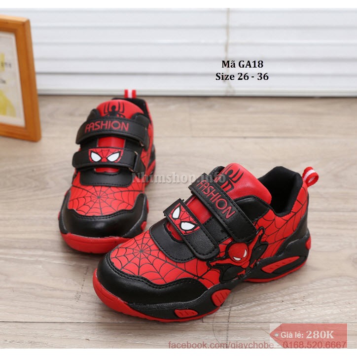 Giày thể thao với thiết kế thời trang họa tiết người nhện trông rất là xinh và khỏe khoắn. Giày có kích thước phù hợp với độ tuổi của bé trai từ 3-10 tuổi. Với chất liệu da mềm, đế ma sát cao chống trơn trượt, lớp lót êm giúp an toàn bàn chân của bé.
