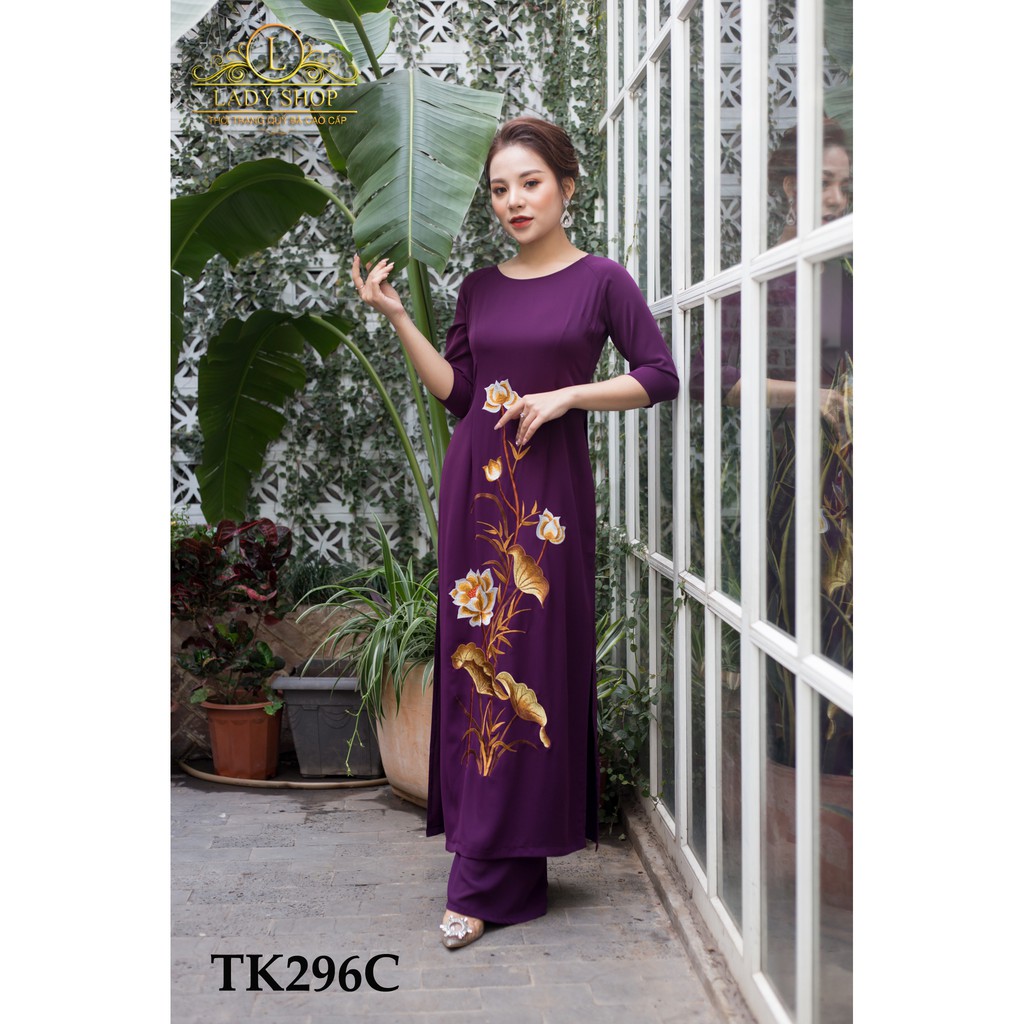 Một bộ áo dài gồm áo và quần được bán với giá ưu đãi 389.000 VND (giá gốc 690.000 VND) với đa dạng kích thước cùng 3 màu cho bạn lựa chọn là tím, đỏ sẫm và xanh than. Điểm làm nên sự đặc biệt cho chiếc áo dài này chính là từng đường nét mộc mạc, uyển chuyển của đóa sen thanh tao nổi bật trên nền áo tối màu, làm tôn lên vẻ quý phái, sang trọng, thần thái mặn mà của người mặc.