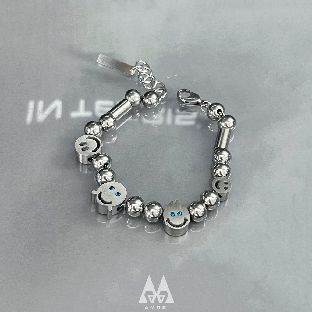 7. Vòng tay thép titan phối hạt hình mặt cười cá tính