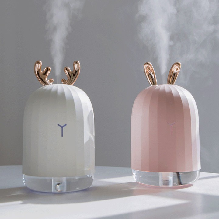 Máy phun sương tạo độ ẩm hình sừng hươu xinh xắn đem đến ba công dụng tuyệt vời cho người sử dụng: khử mùi, tạo độ ẩm và tạo hương thơm. Với công suất chỉ từ 1.5-2W đủ dùng cho diện tích phòng từ 15 đến 405m2, máy phun sương sừng hươu có khả năng khử hoàn toàn mùi hôi và ẩm mốc, đồng thời cung cấp độ ẩm cần thiết cho căn phòng, đặc biệt là với những căn phòng đóng kín và sử dụng máy lạnh thường xuyên. Ngoài ra, bạn cũng có thể nhỏ một vài giọt tinh dầu vào trong mỗi 100ml nước để tạo hương thơm quyến rũ và dễ chịu, giúp thư giãn tinh thần, giảm căng thẳng hiệu quả.
