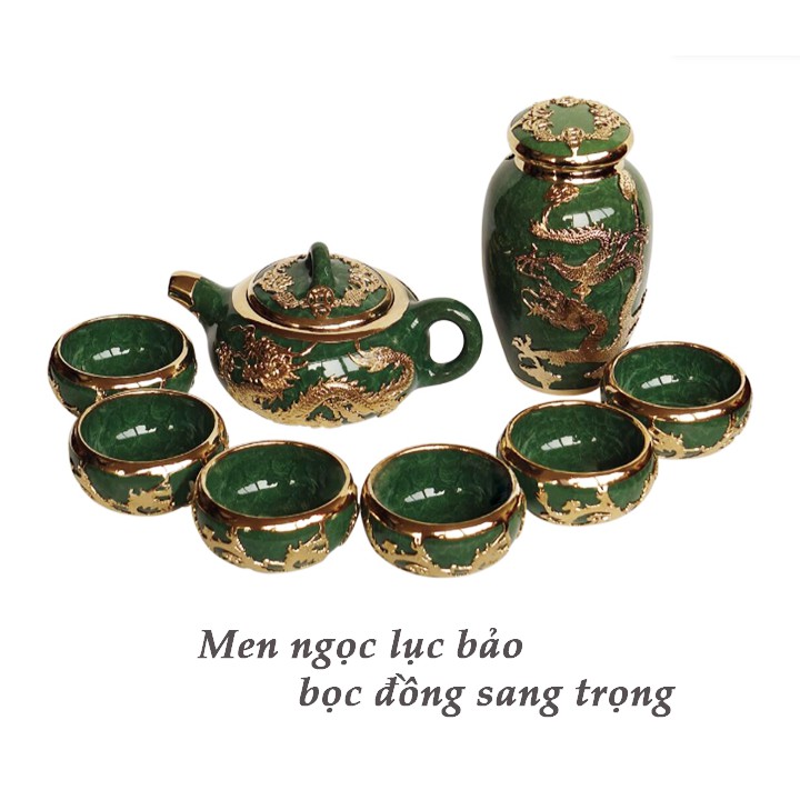 Bộ ấm chén men ngọc lục bảo bọc đồng