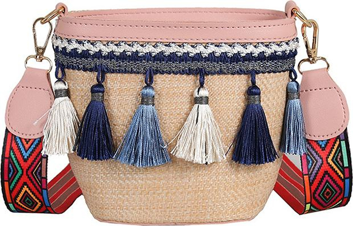 Túi đeo chéo G8906 có xuất xứ từ Hàn quốc, kiểu dáng tua rua trẻ trung dễ thương, nhỏ gọn với dây kéo bền và chắc chắn. Thiết kế cực kì đẹp mắt, năng động, dễ dàng phối với nhiều loại quần áo. Túi được làm từ chất liệu cói rất đẹp và lạ mắt, nhiều ngăn được thiết kế rộng rãi để chứa được nhiều đồ đạc. Bên ngoài là vải cói rất chắc chắn, bên trong là vải lót chất liệu Polyester, có hình dạng xô và dây đeo chéo làm bằng vải với nhiều màu sắc cho bạn tha hồ lựa chọn như viền đen, hồng, xám.