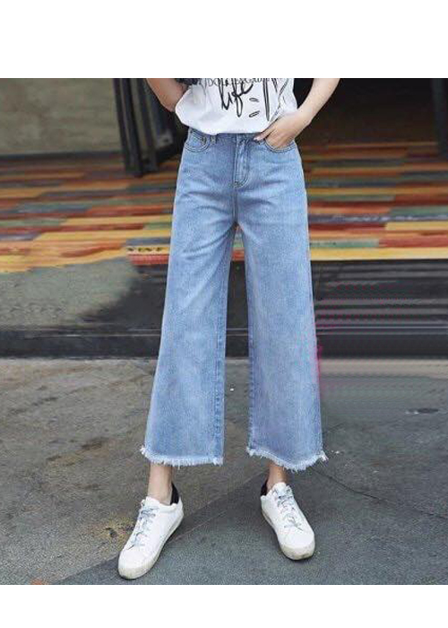 Chiếc quần jean rách lai phong cách thể thao với chất liệu co giãn tốt sẽ là sự lựa chọn tuyệt vời cho bạn. Form quần lưng cao, loe nhiều và màu xanh trẻ trung có đa dạng size cho bạn lựa chọn từ S, M, L. Bạn có thể diện chiếc quần này đi dạo phố, trà sữa hay tiệc tùng với bạn bè. Tuy nhiên, để có thể diện quần đẹp thì các bạn cũng nhớ lưu ý tới dáng người của mình nhé! Nếu bạn là người có chiều cao khiêm tốn thì những chiếc quần có độ dài trên mắt cá chân sẽ giúp các bạn chiều cao kha khá đấy.