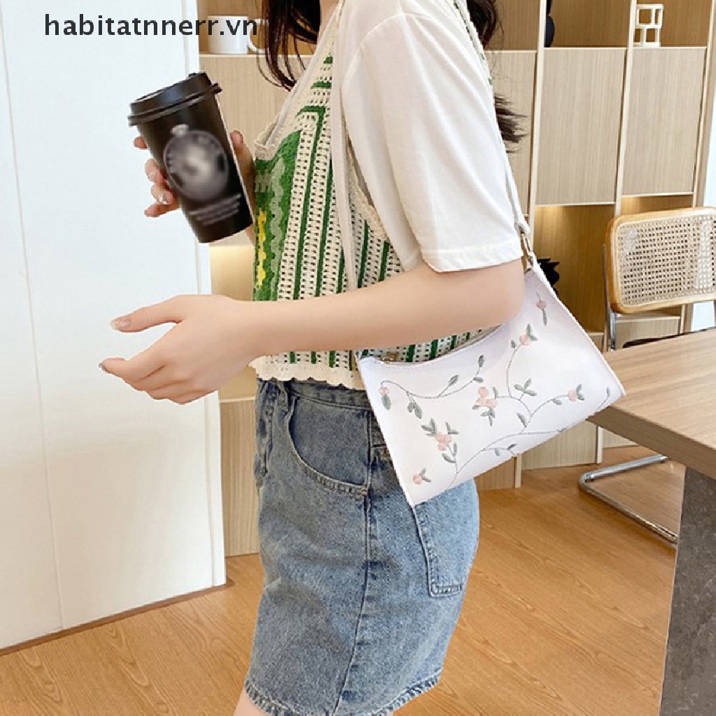 14. Túi kẹp nách da PU thêu hoa trẻ trung