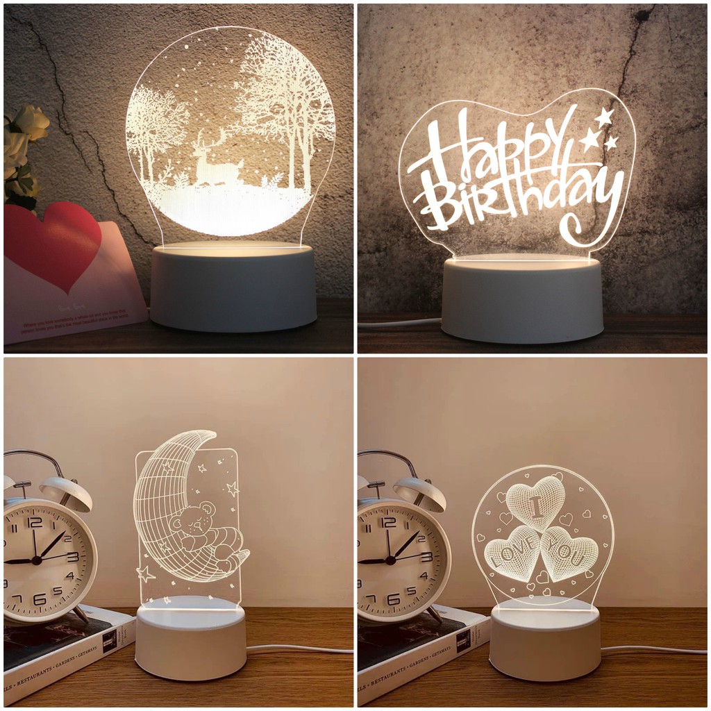 Đèn ngủ 3D có thiết kế đơn giản với chân đế tròn phía dưới, bên trên là tấm nhựa mica cao cấp khắc laser hình ảnh sinh động, ý nghĩa. Tùy vào mức độ tình cảm của hai bạn mà bạn có thể chọn lựa những loại hình ảnh khác nhau để nói lên lời nhắn gửi của mình, như là: dòng chữ “I Love You”, bàn tay tạo dáng trái tim, hình chú gấu ru ngủ,...