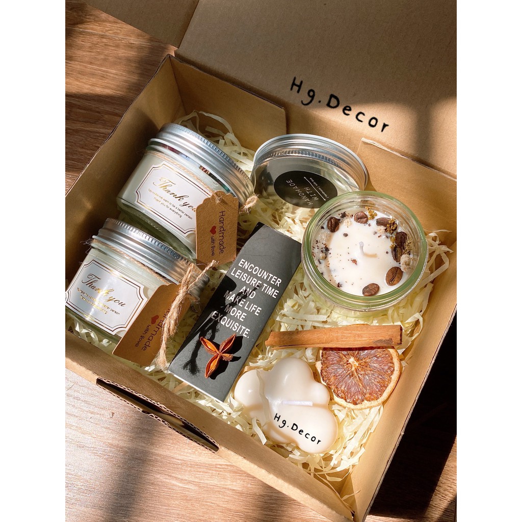 Set quà tặng nến thơm hộp nắp gài vintage, tặng kèm nến hình đám mây và hoa cỏ tự nhiên chính là loại nến thơm chúng mình muốn gợi ý cho bạn. Nến thơm được làm từ sáp đậu nành, an toàn thân thiện với môi trường. Nến có thể tích khoảng 100ml, có thời gian đốt tối đa lên đến 30h. Nến thơm hộp nắp gài Vintage có 13 mùi được chiết xuất từ các hương liệu tự nhiên như oải hương, bạc hà, coffee, v.v... Bạn có thể thoải mái lựa chọn mùi hương mà nàng yêu thích để làm món quà ý nghĩa dành cho nàng.