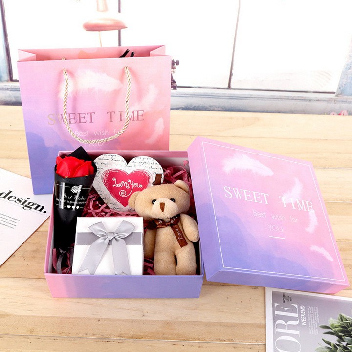 Hộp quà gấu và hoa hồng sáp đáng yêu